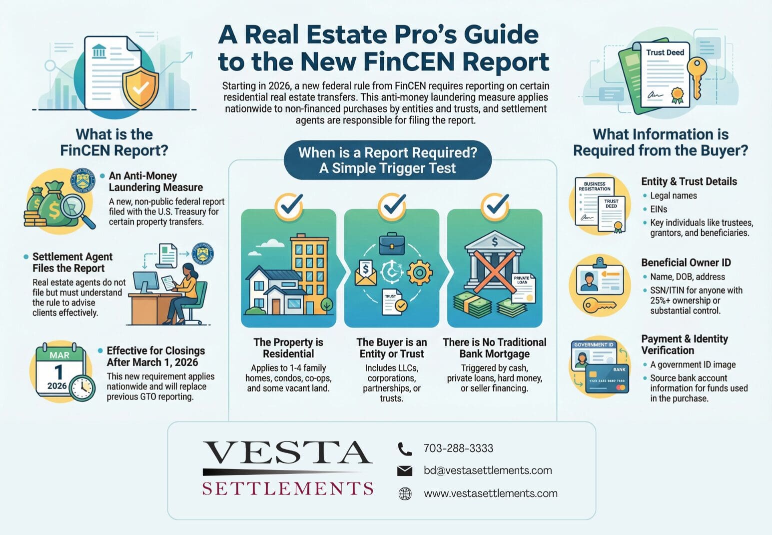 The new FinCEN rule doesn’t stop investors from using entities or trusts — but it does require transparency. Planning ahead and understanding the trigger conditions will help ensure smoother closings and fewer surprises once the rule takes effect.