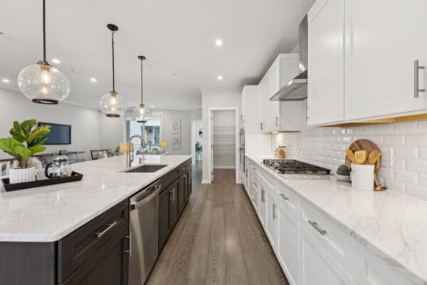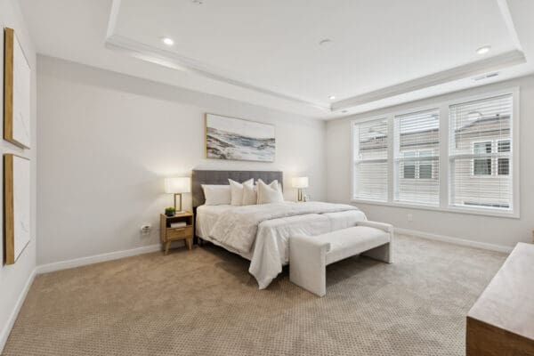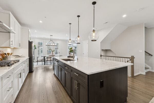 Discover this exquisite end-of-row townhouse in the sought-after Commonwealth Place at Westfields, built in 2021. Spanning 2,170 sq ft, this contemporary gem boasts an open floor plan that seamlessly connects the gourmet kitchen—featuring upgraded marble countertops, stainless steel appliances, and a spacious island (11′ x 5′)—to the inviting family room. There is also a sunlit office and half bath on the main level. Enjoy the luxury of a walk-in shower in the primary bath and ample storage with walk-in closets. Two secondary bedrooms, a full bath and updated laundry room (sunlit room with upper/lower cabinets, granite countertop and utility sink) finish out the second level. The interior is adorned with elegant finishes, including engineered wood and plush carpeting, complemented by recessed lighting and custom Norman brand plantation shutters. Step outside to find an expansive rooftop deck with gorgeous views, perfect for entertaining, alongside beautifully maintained common grounds and walking paths throughout the community. Additional highlights include an attached garage with rear entry, exterior lighting, and just across the street from The Field at Commonwealth, which holds a Wegmans, numerous restaurants and shops, and has proximity to public transportation. With a low association fee covering maintenance and snow removal, this home offers both convenience and comfort in a vibrant community. Don’t miss the chance to make this stunning property your own! ***UPDATES & FEATURES: 2025: fresh paint, new carpets on upper level, marble kitchen counters resurfaced and sealed; All utilities 2021; Marble kitchen counters, 11′ x 5′ kitchen island with cabinetry on both sides with stool overhang; walk-in pantry; Plantation shutters throughout main level; Balcony off living room; huge rooftop deck; WiFi wired & boosted with Verizon; updated laundry room