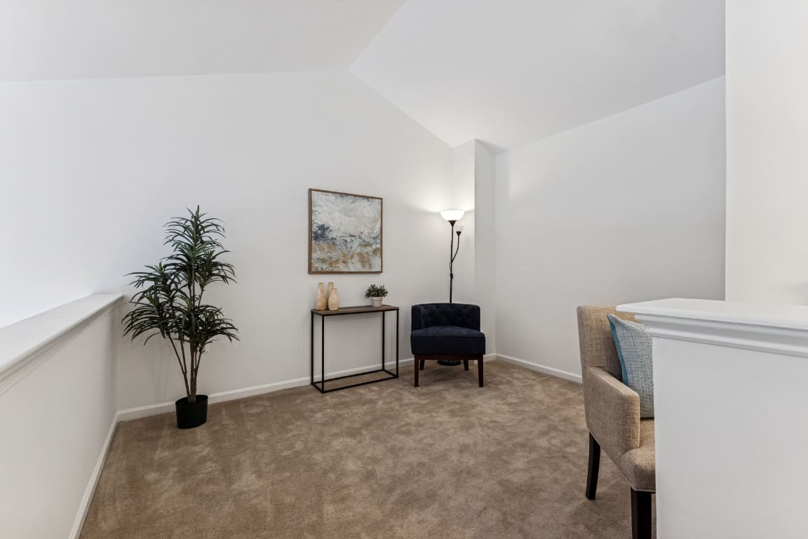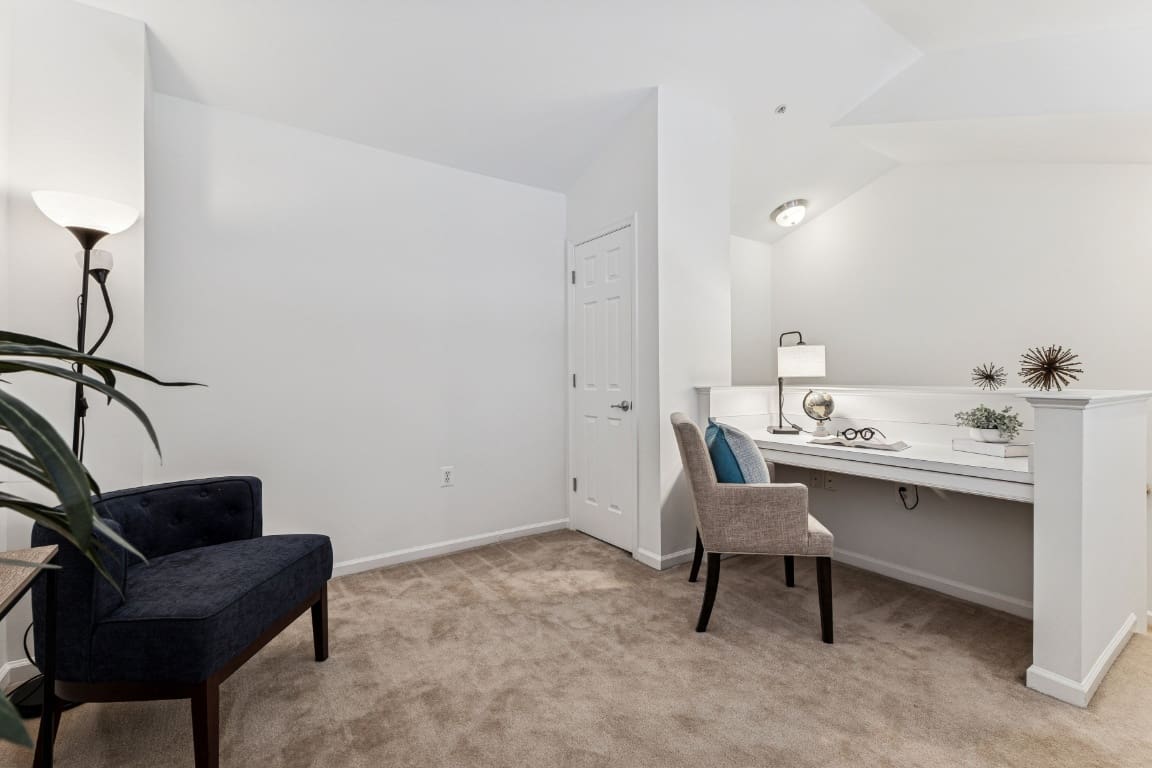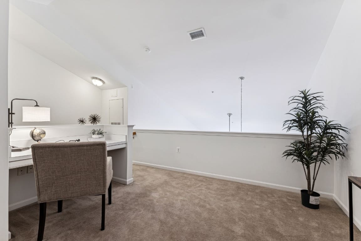 Stunning top-level condominium in Chantilly Park Condos featuring bright, open interiors, 2-deeded garage spaces, and same level storage unit. This inviting home offers vaulted ceilings and a gas fireplace that anchor the spacious living area, complemented by gas cooking, a well-appointed kitchen with pantry, and a full-sized washer/dryer conveniently located on the main level of the unit. The private primary suite includes a walk-in closet. The full bathroom features a generous soaking tub/shower combination. A versatile loft area with built-in desk workspace is perfect for an office, guest area, or playroom. You’ll appreciate the natural light and elevated courtyard views from this upper unit. Two deeded parking spaces (D31 & D33) and a deeded storage unit (85) with shelving and lock are included. One parking space is currently leased at $650 for six months and may convey to the new owner if desired; otherwise the lease will terminate and both spaces will be available at settlement. There is elevator service from the 1st level mailbox bank to the 4th level unit; direct access to the fourth level from your parking spaces. This is an ideal location with easy access to shopping, commuter routes, and neighborhood amenities.