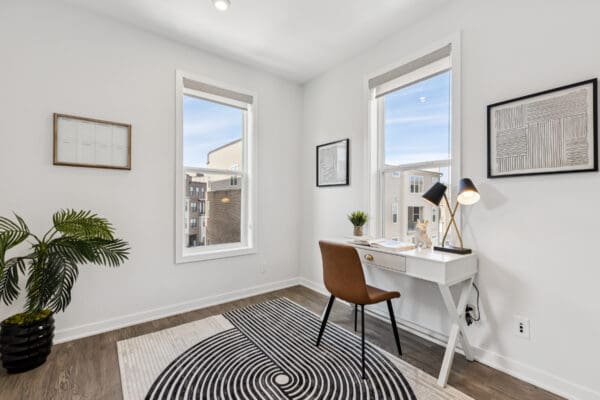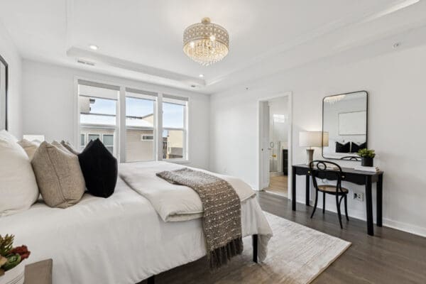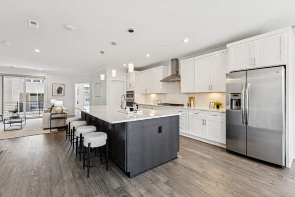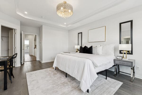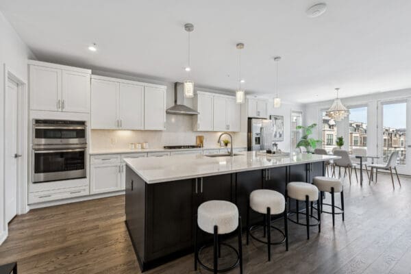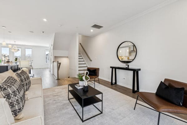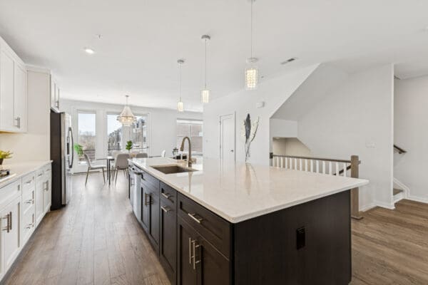 Discover this meticulously maintained 3-bedroom townhouse with an expansive rooftop deck, located in the highly sought-after Commonwealth Place at Westfields. Built in 2021 and offering 2,170 square feet, this modern home features an open, airy floor plan ideal for both daily living and entertaining. The gourmet kitchen showcases quartz countertops, stainless steel appliances, and an oversized 11’ x 5’ island, flowing seamlessly into the spacious family room. The main level also includes a sun-filled office and a conveniently placed half bath. Upstairs, the primary suite offers a spa-like bath with a walk-in shower and generous walk-in closets. Two additional bedrooms, a full bath, and a dedicated laundry room complete the second level. Elegant finishes are found throughout, including engineered wood flooring on all levels (with carpeted stairs at the ground level) and recessed lighting throughout. Step outside to the expansive rooftop deck, where beautiful views create the perfect backdrop for entertaining or unwinding. Residents enjoy manicured common areas and walking paths throughout the community. Additional highlights include an attached rear-entry garage, exterior lighting, and an unbeatable location directly across from The Field at Commonwealth, home to Wegmans, popular restaurants, shops, and convenient access to public transportation.