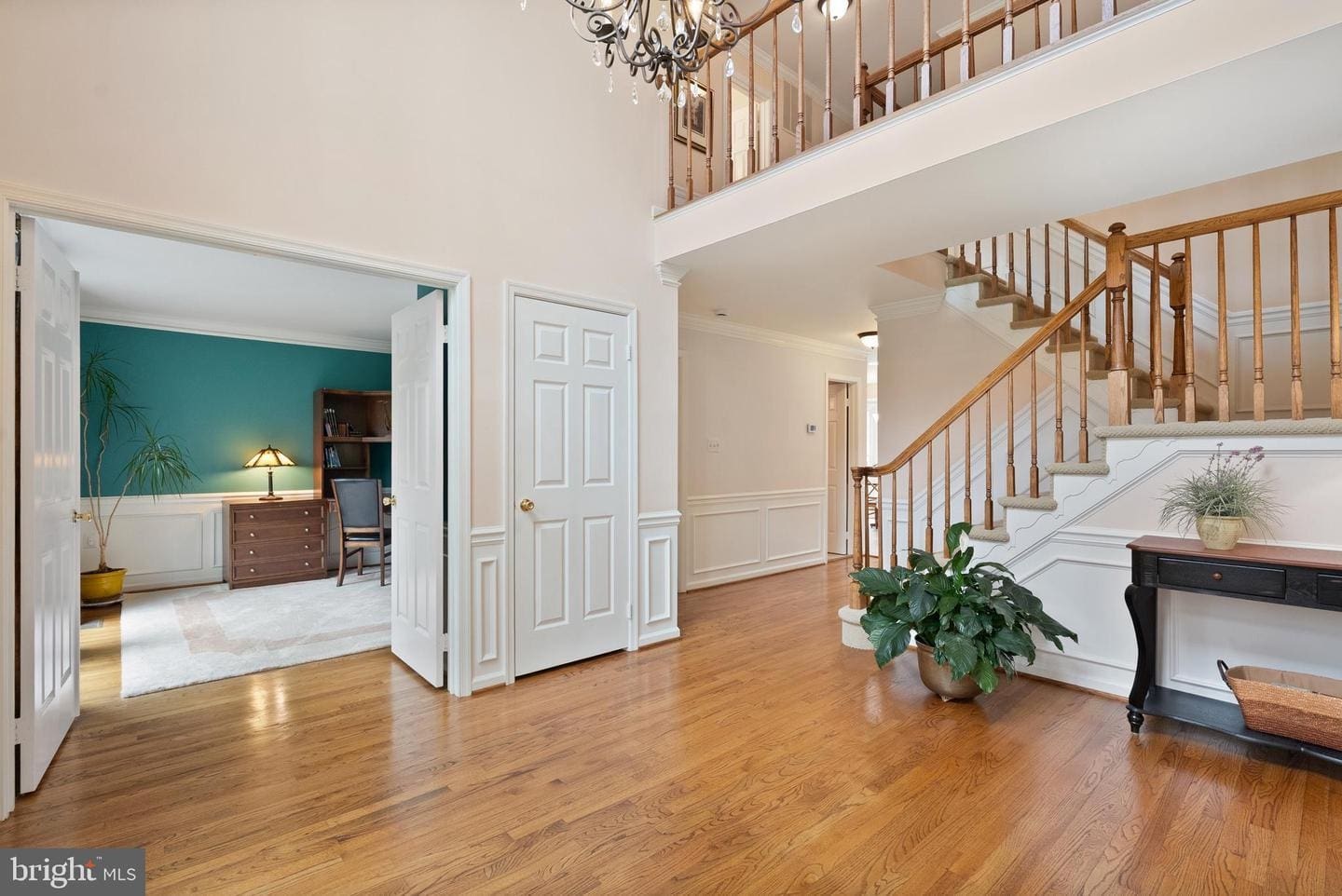 Set on nearly 1.5 acres on a peaceful cul-de-sac in a sought-after Fairfax neighborhood within the Woodson High School pyramid, this beautifully maintained colonial offers nearly 4,500 square feet across three finished levels, combining classic design with thoughtful updates and inviting indoor-outdoor living. The main level welcomes you with a spacious foyer entry and features hardwood floors. A formal, sunlit living room provides a bright and elegant space for entertaining or relaxing. A dedicated office is ideal for working from home. The formal dining room showcases classic moldings and a large picture window overlooking the expansive backyard, creating a beautiful setting for gatherings.
