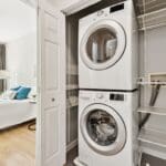 The bathroom was thoughtfully remodeled in 2019, complementing the home’s fresh and contemporary appeal. Other major upgrades include a new HVAC system (air handler & compressor – 2019) and a new water heater (2021) for peace of mind. The spacious walk-in closet is enhanced with Elfa shelving, maximizing storage and organization.