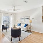 Enjoy abundant natural light streaming through the living space, leading to a sun-filled balcony, perfect for relaxing.