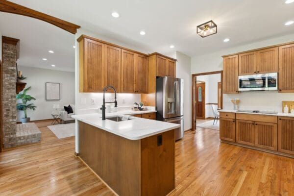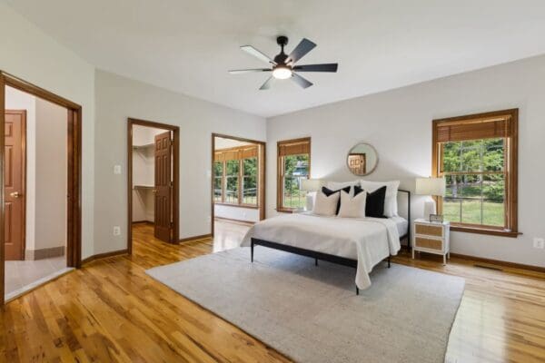 The main house boasts fresh paint throughout, new hardwoods throughout main level living areas, pristine hardwoods in the bedrooms, and LVP on upper level. 2024 kitchen updates include Bali Calacatta Quartz counter tops, under mount deep sink with black matte gooseneck faucet and matching hardware, and all new appliances. All bathrooms have updated fixtures, hardware and toilets. New on-trend lighting fixtures, LED recessed lighting, and ceiling fans are throughout the property.