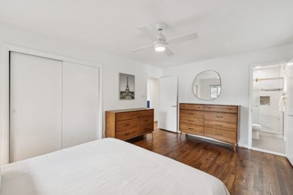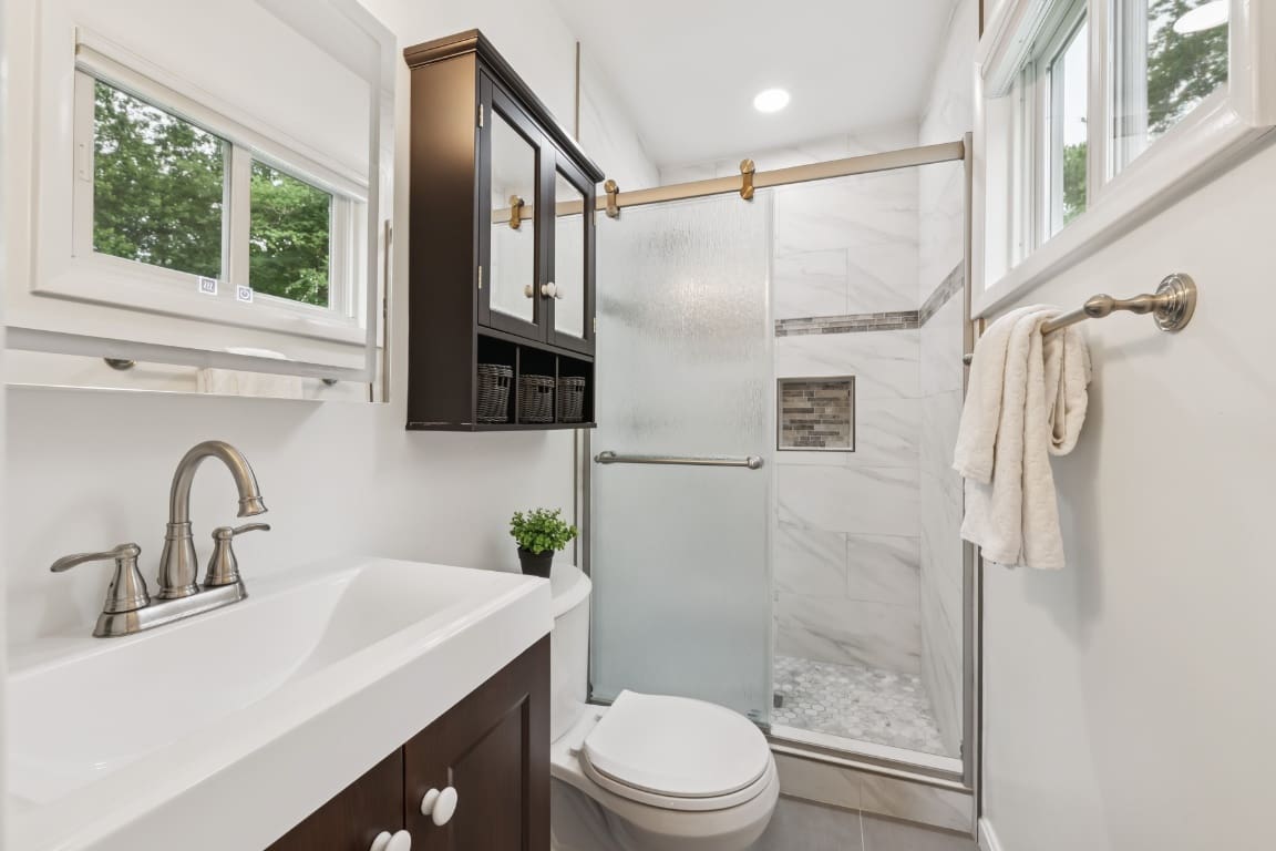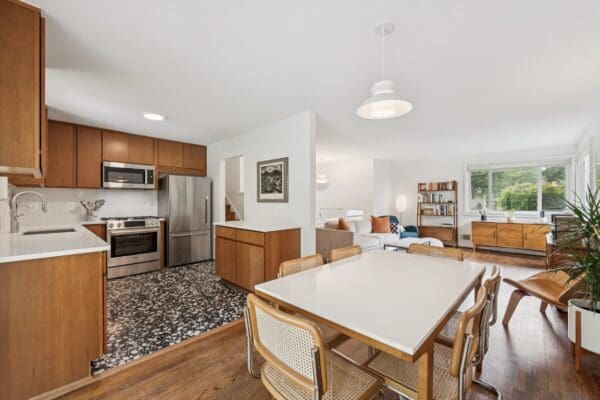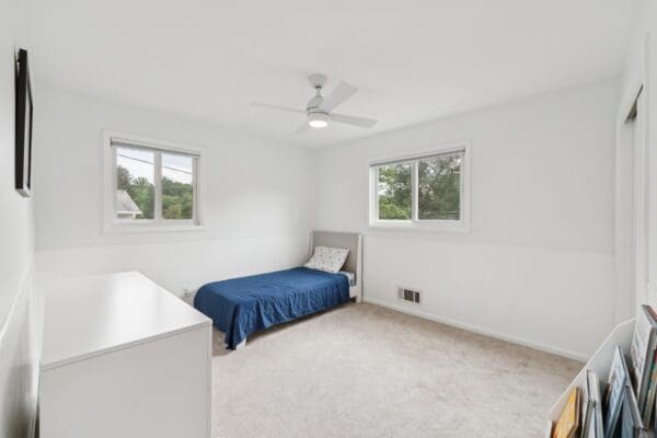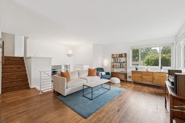 The light and bright living room and dining rooms have hardwood floors and ample windows to bring in the sunshine and an oversized slider to the back patio.The upper level has a spacious primary bedroom with a beautifully updated primary bathroom with ceramic tile. There are two additional bedrooms on this level and a hall bathroom that was thoughtfully updated in 2022.