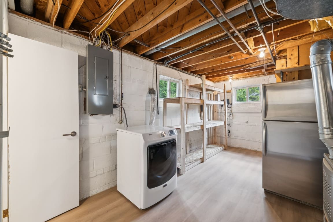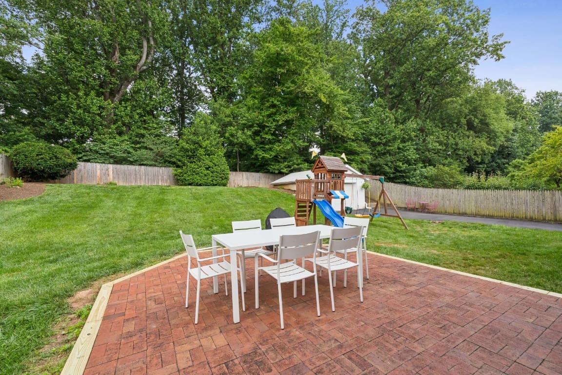 The lower level has a large family room with cozy wood burning fireplace, recessed lighting, cedar closet and convenient powder room. The carpet was replaced in 2023. There is ample storage in the utility room with brand new LVP flooring (2025) and a refrigerator that conveys. Step out into the backyard and find the perfect space for outdoor entertaining. Enjoy the private, fully fenced yard that backs to trees.