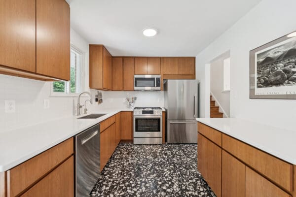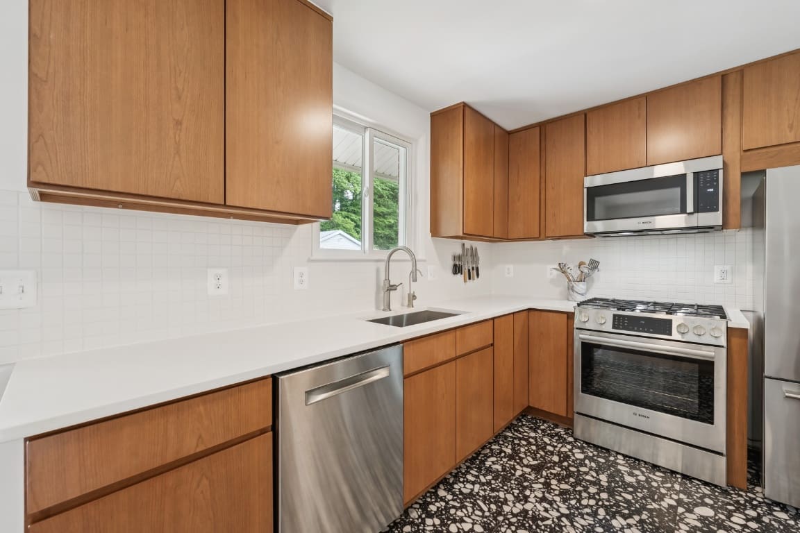 Incredible opportunity to live in the heart of Fairfax City. Step into the foyer of this home and you will immediately fall in love. On the main level you will find a beautifully updated kitchen with quartz countertops, custom built soft-close cherry cabinets and custom white backsplash. Appliances include a Bosch oven (2024), Bosch microwave (2024), Bosch dishwasher and a Fisher & Paykel refrigerator (2024).