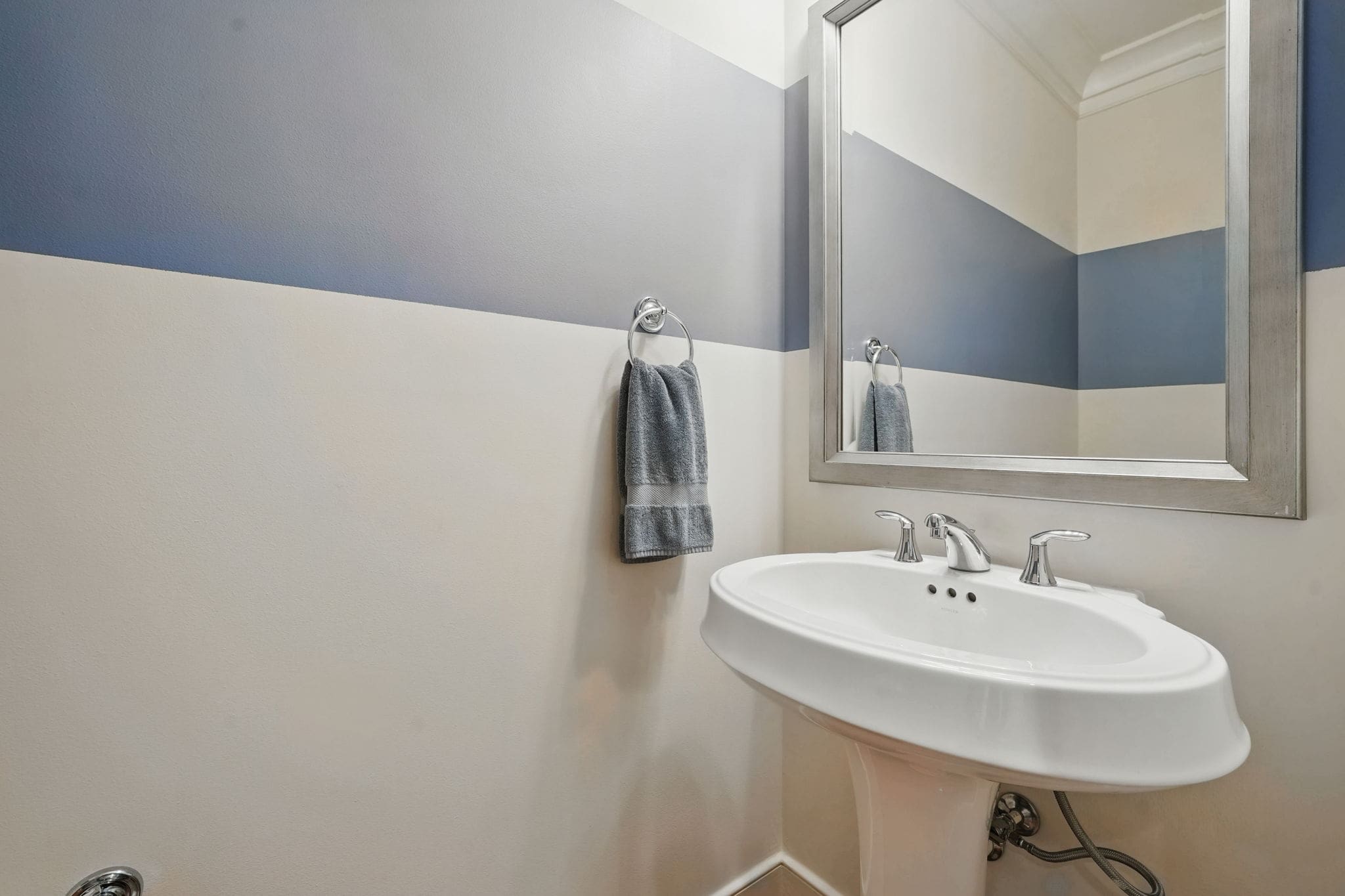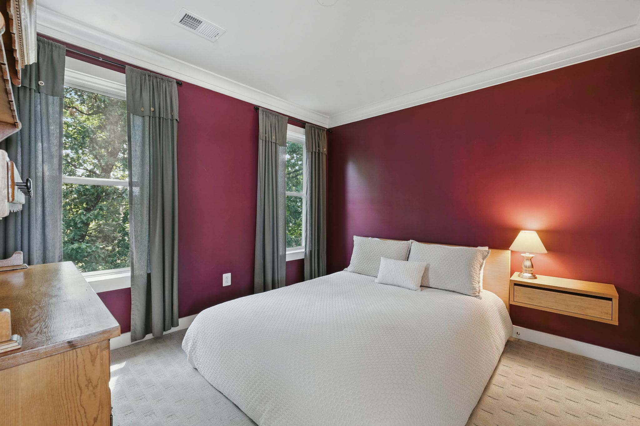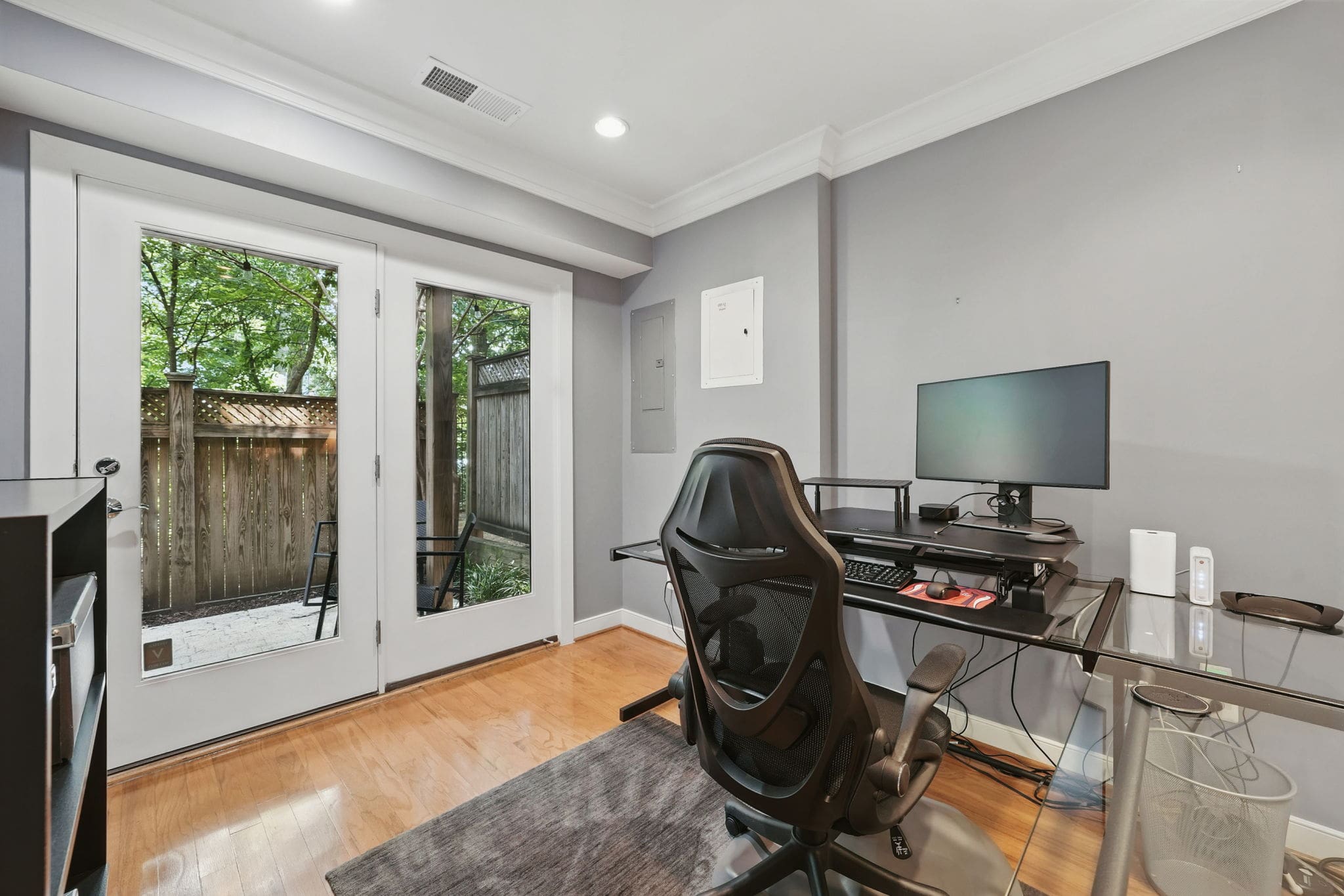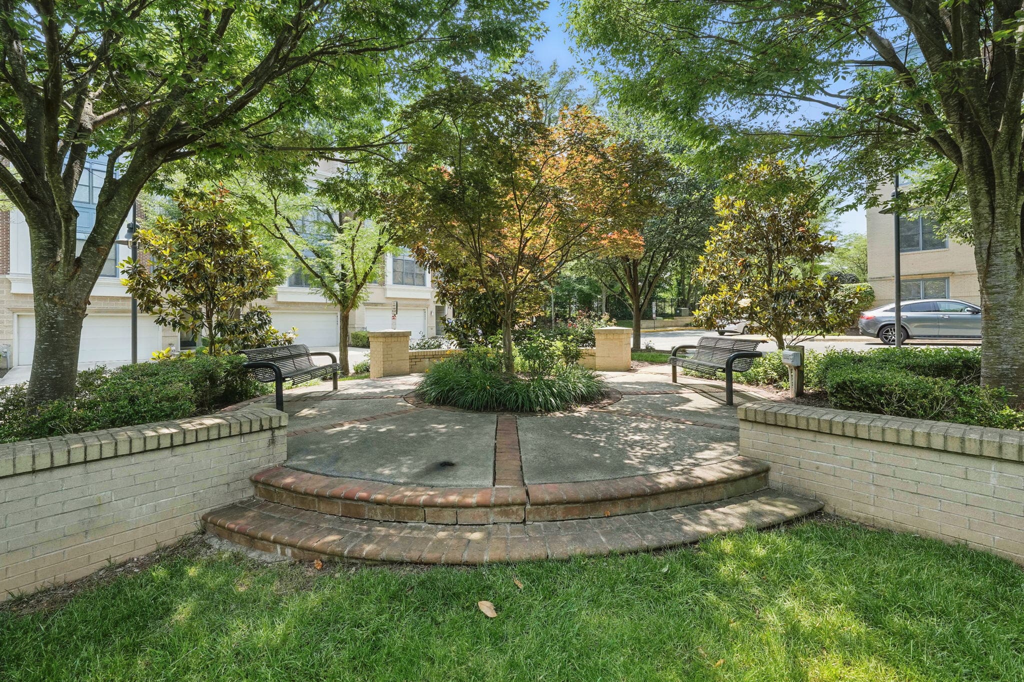 This EYA DePaul model, 3-bedroom, 4-bath townhome stands out among other two-car garage properties with its upgraded finishes, versatile floor plan, and multiple outdoor living spaces. The open main level features hardwood flooring, a spacious kitchen with a massive island, quartz countertops and exquisite backsplash, gas GE Profile range, pantry storage closet, and access to a composite deck overlooking green space—ideal for grilling or relaxing outdoors.