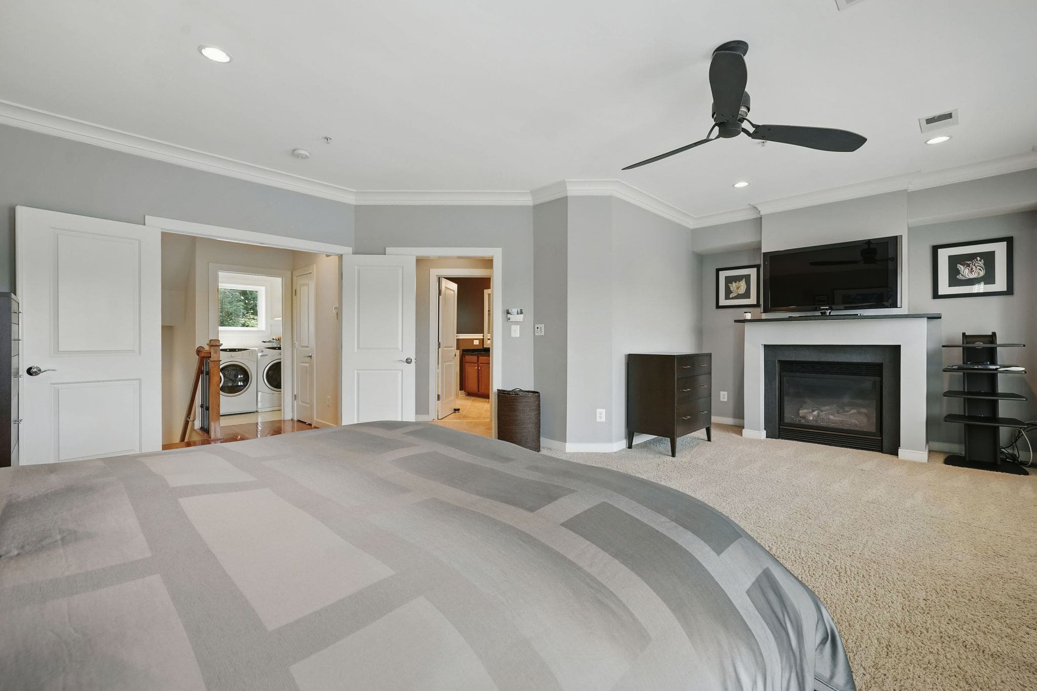 Additional upgrades include crown molding, recessed lighting, and a gas fireplace with mantle. The property also offers true two-car garage parking plus a two-car driveway.