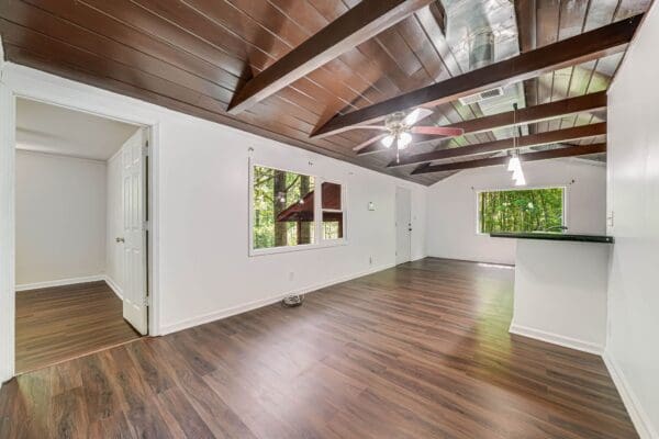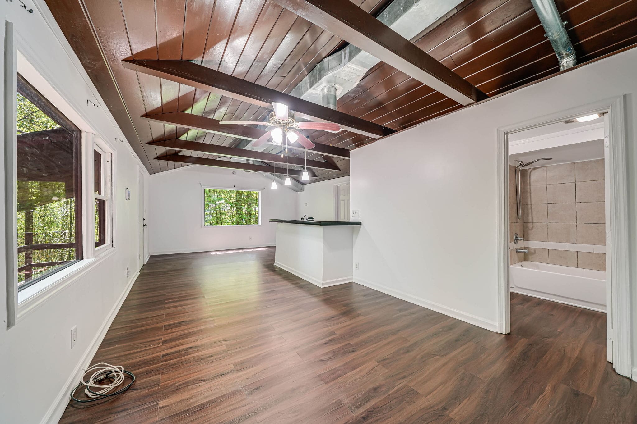 Welcome to Lake Jackson Hills, a charming community at Manassas’s Lake Jackson. An escape from the hustle and bustle of Northern Virginia its natural beauty is an emersion into nature. This 2-bedroom, 1 bathroom bungalow property features a welcoming front porch (2024), asphalt driveway and crushed stone parking pad, along with concrete pad with fire pit. Inside, you will enjoy an open floor plan with 2022 luxury vinyl flooring throughout, kitchen bar with pendant lighting, vaulted wood ceiling and exposed beams. Mechanical features include: all electric utilities and appliances, 2023 water heater, 2013 alternative septic system, 2022 new vapor barrier for the crawl space, 2010 heat pump (roof age unknown). Located just 5 miles from historic Old Town Manassas, only 6.5 miles to the Manassas Park VRE station, near the Prince William Parkway, Dumfries Rd and route 28, this property offers easy access for commuters, restaurants and shopping. Enjoy lake access with an optional membership to the Lake Jackson Civic Association.